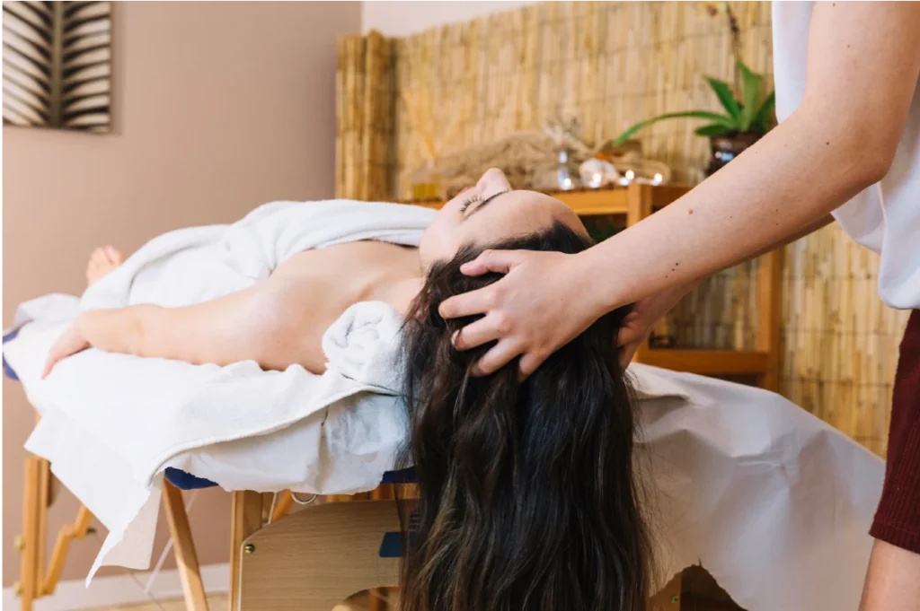 Ayurvedic antidandruff treatments often involve personalized assessments of scalp conditions, therapeutic head massages with medicated oils, steam, and herbal packs. These methods aim to moisturize the scalp, enhance blood circulation, stimulate hair growth, and alleviate dryness. It’s a holistic approach that combines traditional practices for overall hair and scalp health.